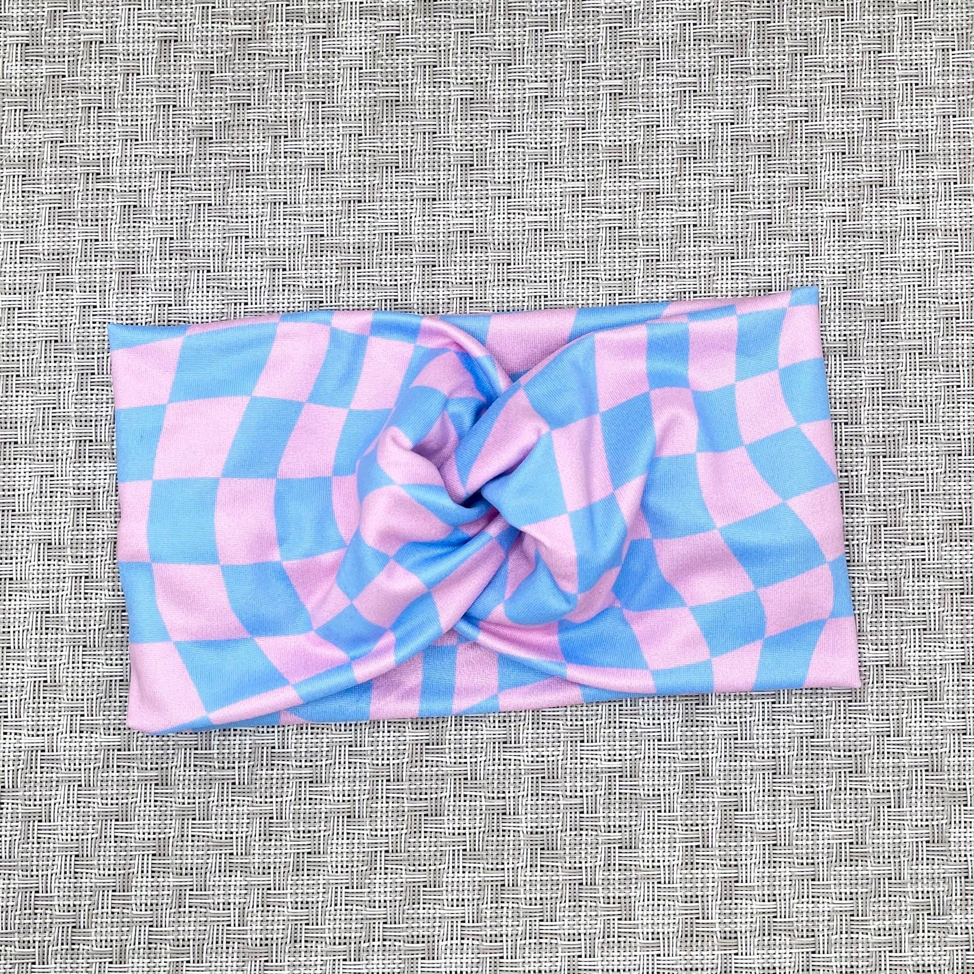 Pink and Blue Checker Headband